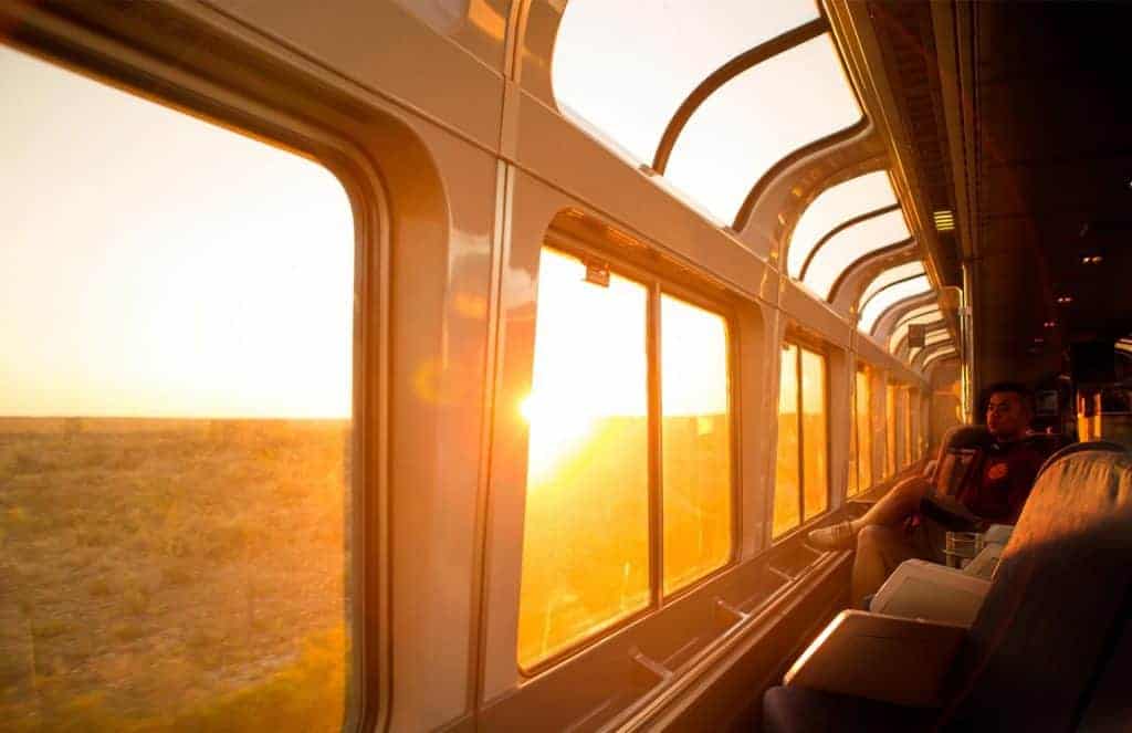 I utsiktsvagnen har passageraren Travis Siewers gjort sig bekväm inför resan. Han är en erfaren resenär som ofta åker tåg.